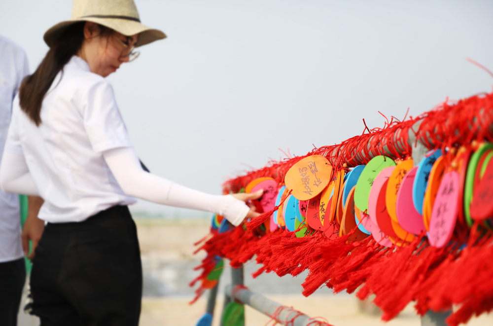 正對著全球最高的媽祖像的渤海第一灣,前往趕海拾貝的游客均可獲得一枚木質(zhì)許愿牌,悄悄寫下愿望,靜靜等待實現(xiàn)的那一天。