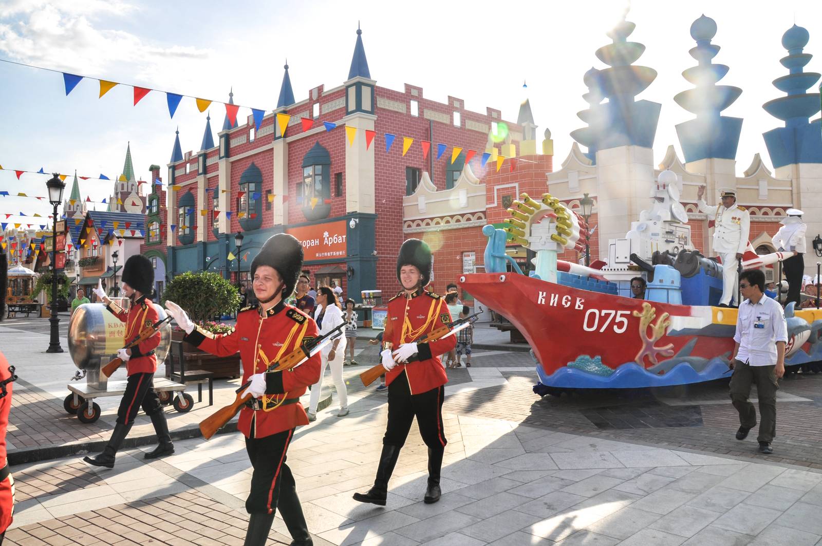 在俄羅斯風情街,將上演氣勢磅礴的航母花車巡游。巡游將軍事與俄羅斯文化主題巧妙融合,數輛華麗震撼的主題花車隊伍,與各具俄羅斯風情的表演方陣,組成一幅壯麗的巡游畫卷,來自俄羅斯的型男靚女將聯袂為您獻上一場史無前例的狂歡盛宴。
